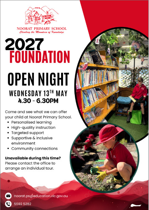 To stay ensure you stay up to date with transition events, please email the school: noorat.ps@education.vic.gov.au